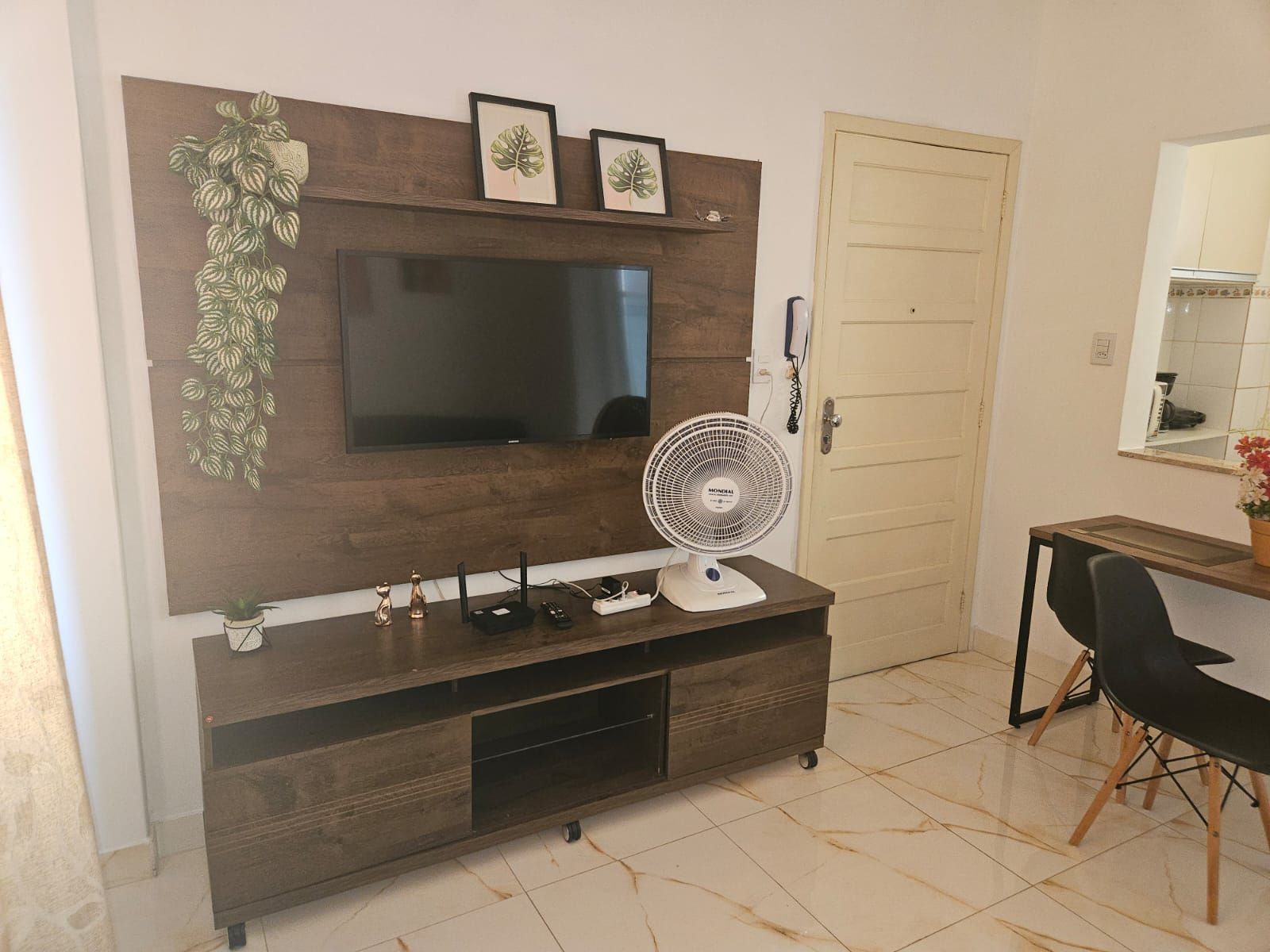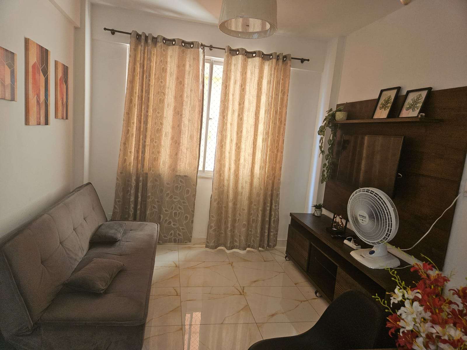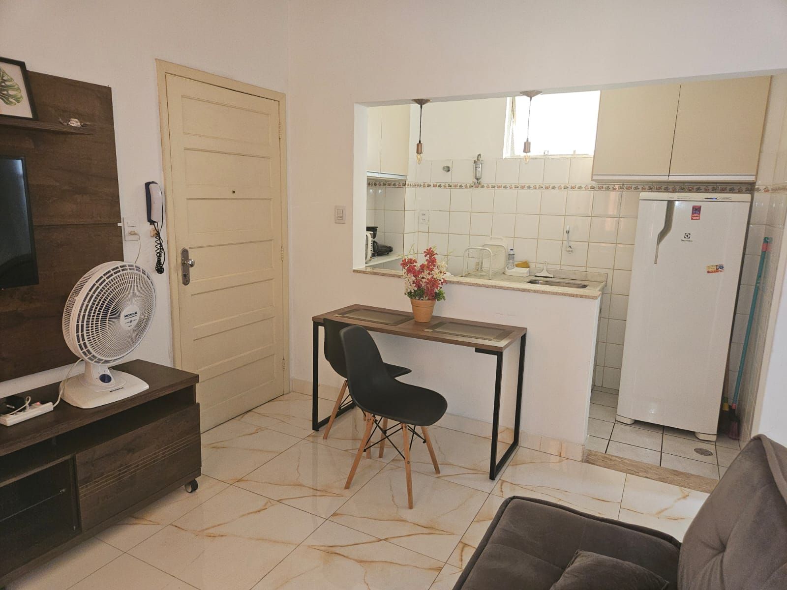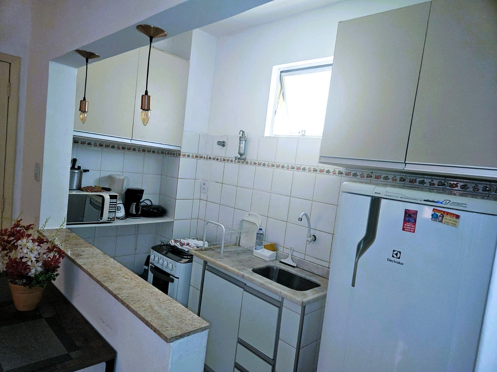 O imóvel possui acomodação para até 2 pessoas, em 1 quarto refrigerado com cama de casal, e um sofá-cama na sala, com ventilador. Possui 1 vaga de garagem coberta. Segue a descrição do imóvel: 37m² de área privativa, Portão eletrônico; Câmeras de Segurança; Wi-fi 500Mb; Sala de Estar; Sacada; Cortina/Persiana; Televisor apenas na sala; Armários no quarto; Cozinha Americana mobiliada; Botijão de gás. O Condomínio possui Salão de Festas; Elevador; Portaria 24 horas; Hall Social; Jardim.