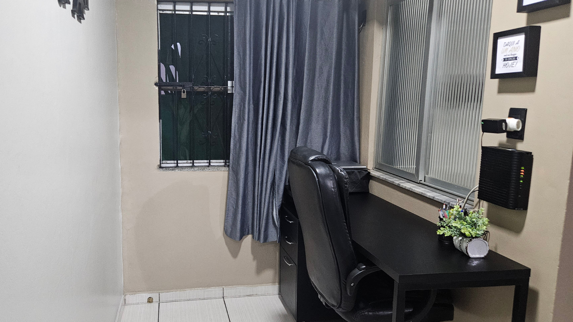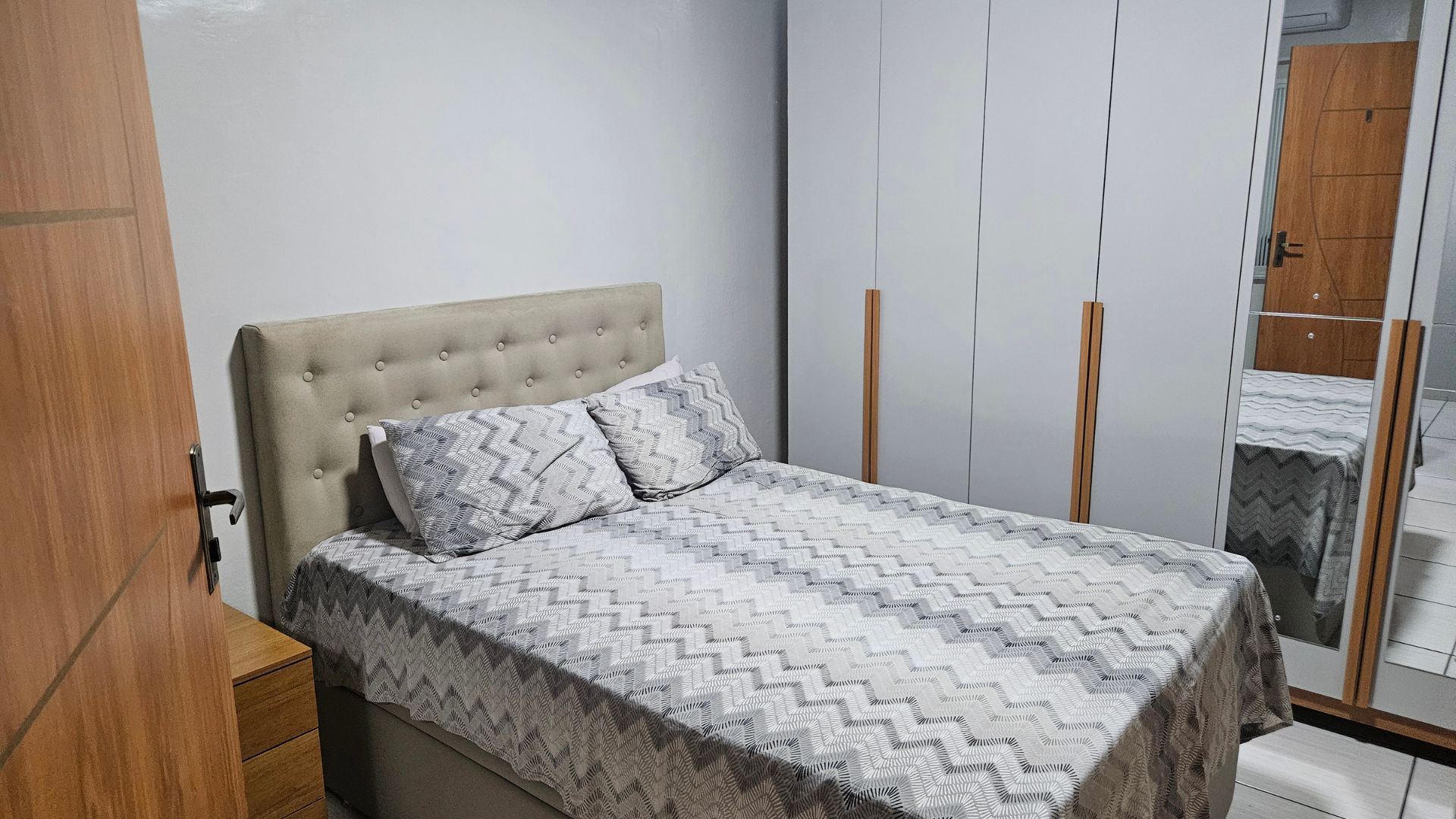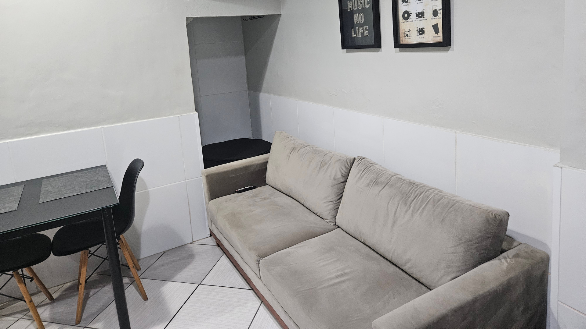 Hospede-se nesta casa, estilo apartamento, pertinho do Hangar, em vila familiar. São 3 andares funcionais, com uma suíte e um quarto, ambos climatizados, que acomodam 2 pessoas, além de gabinete, sala de estar com televisor, cozinha mobiliada, despensa e área ampla de serviço/lavanderia.